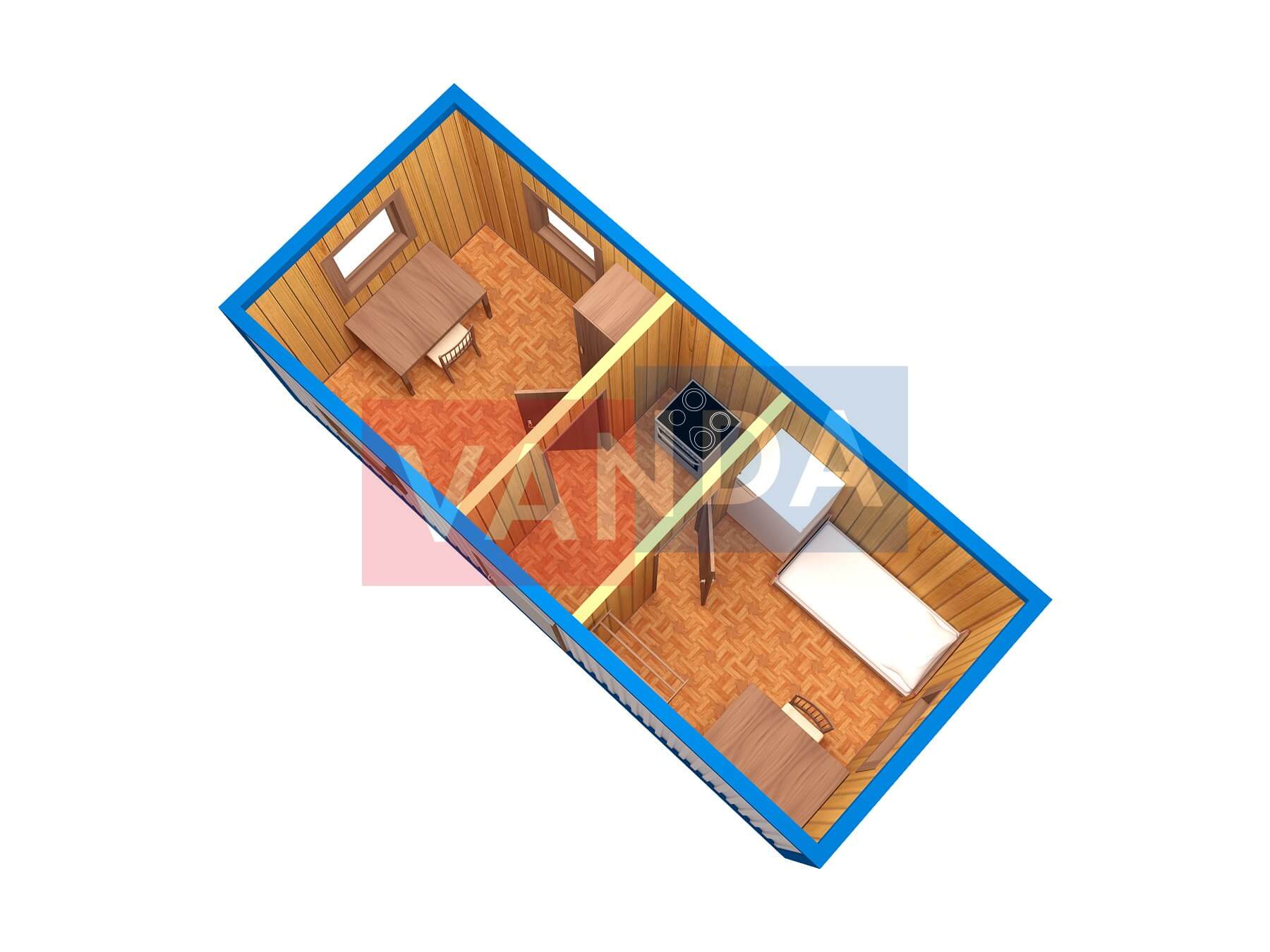 Строительная бытовка со сборкой на месте №4 (вариант 3) 5.8x2.2 12.76 Вагонка деревянная Имитация бруса 140 500 р. Уточняйте у менеджера